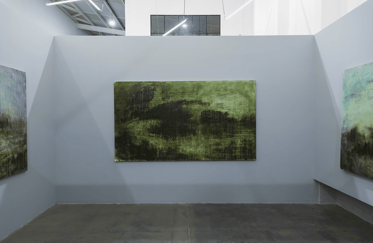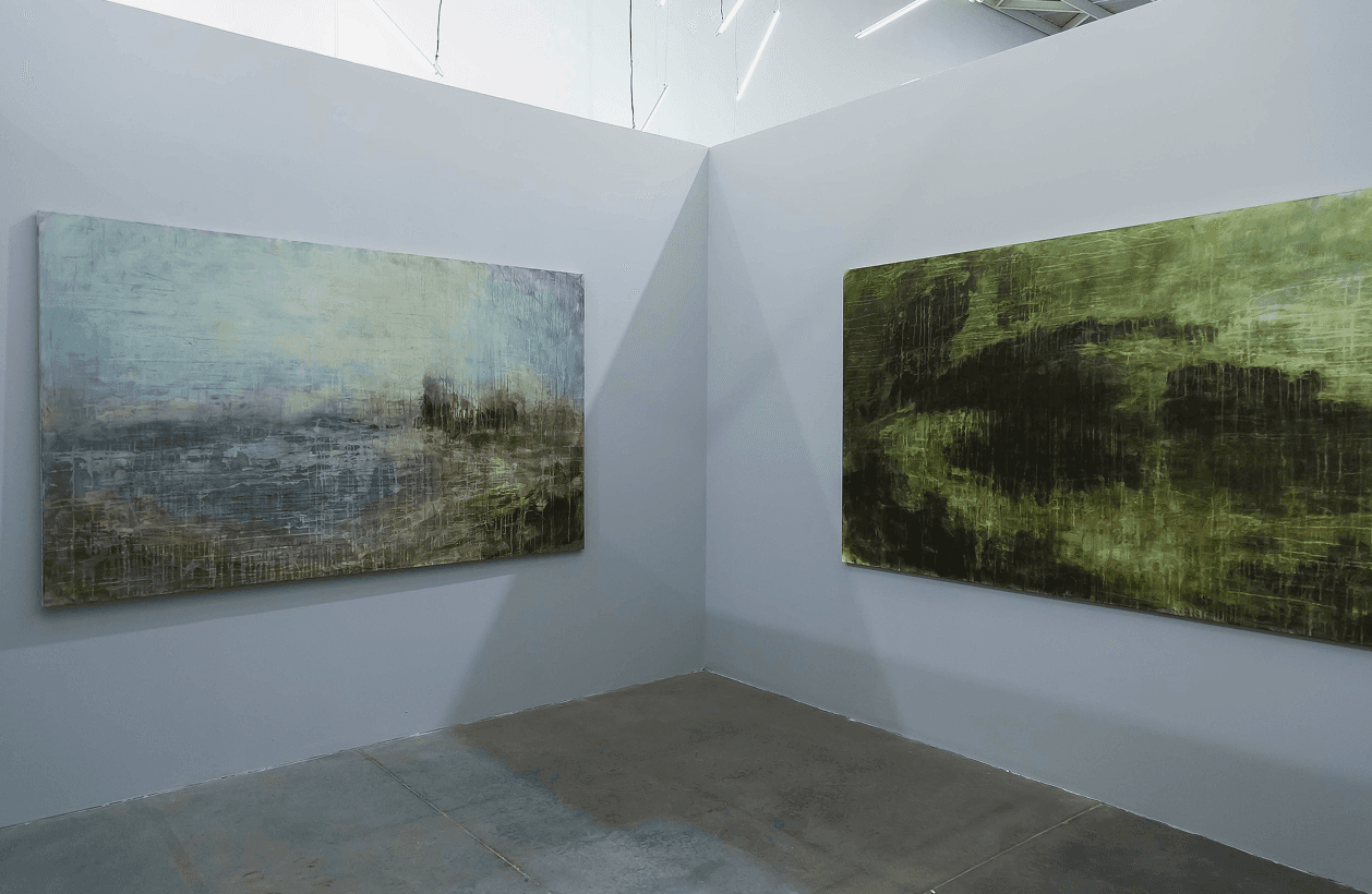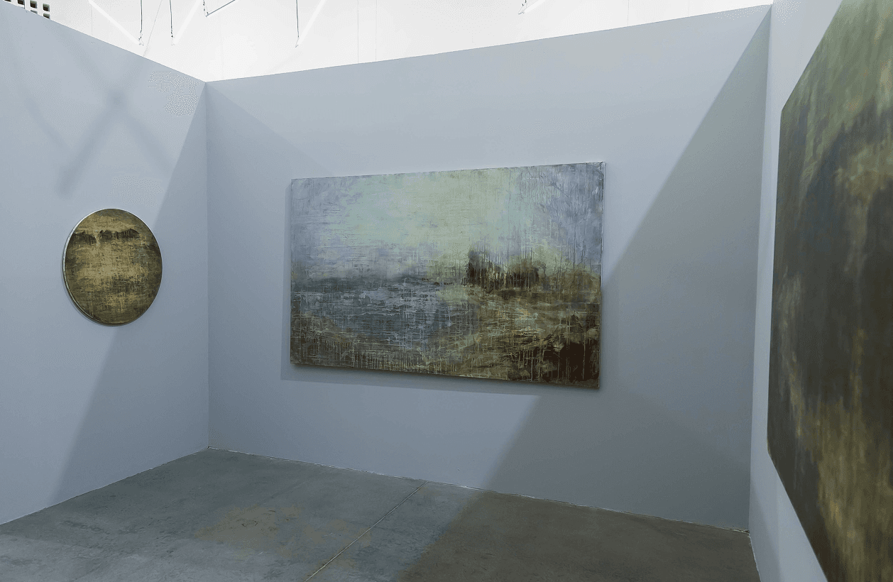 On the images, the somber and elegant abstractions take us to landscapes of romanticism or classicism in terms of their color palette and their games between light and shadow, making us think of the illusion of a fictitious infinite closeup to a fragment of The Walker on the Sea of Clouds (1818) by Caspar David Friedrich or The Destruction of Sodom (1805) by J. M W. Turner, references from the Romantic period that is also a great inspiration for the artist.
